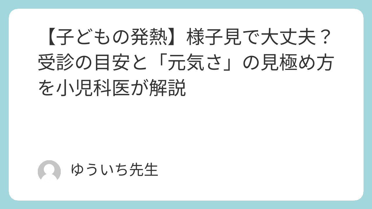 【子どもの発熱】様子見で大丈夫?受診の目安と「元気さ」の見極め方を小児科医が解説