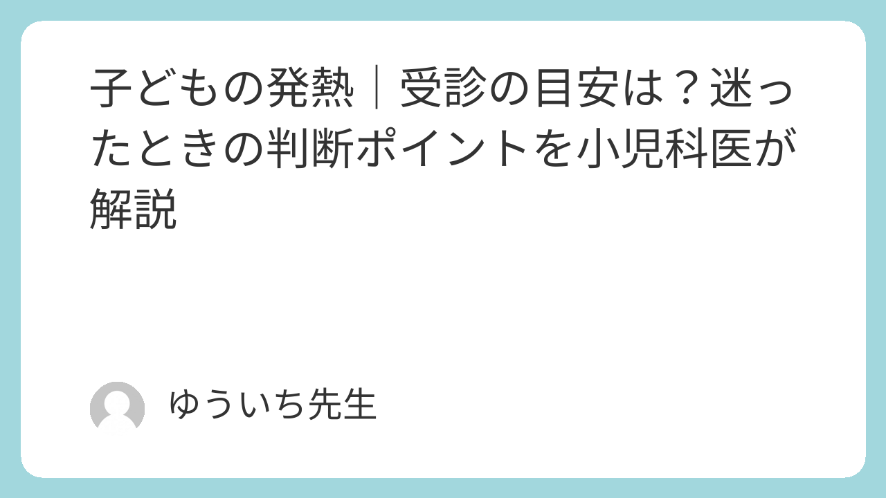 「子どもが熱を出したけど、いつ受診すればいいの?」