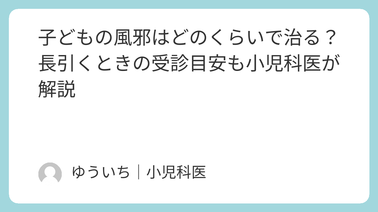 → 子どもの風邪症状の経過について、実臨床に基づきわかりやすく解説されており、「症状は思ったより長引く」という視点が紹介されています。