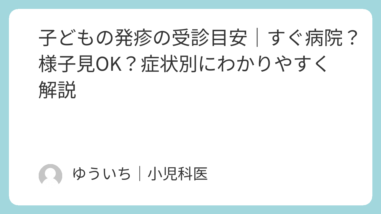 👉 急ぐべき発疹・様子見できる発疹を整理します。