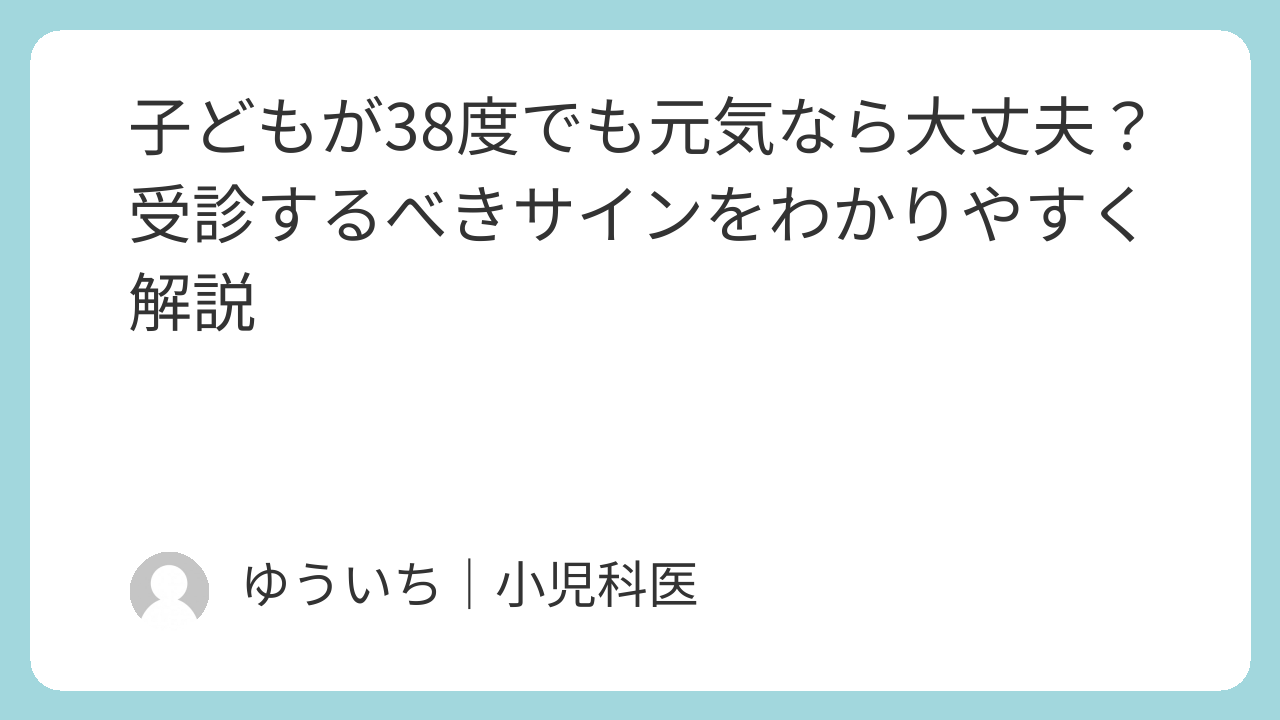 子どもが38度でも元気なら大丈夫?受診するべきサインをわかりやすく解説