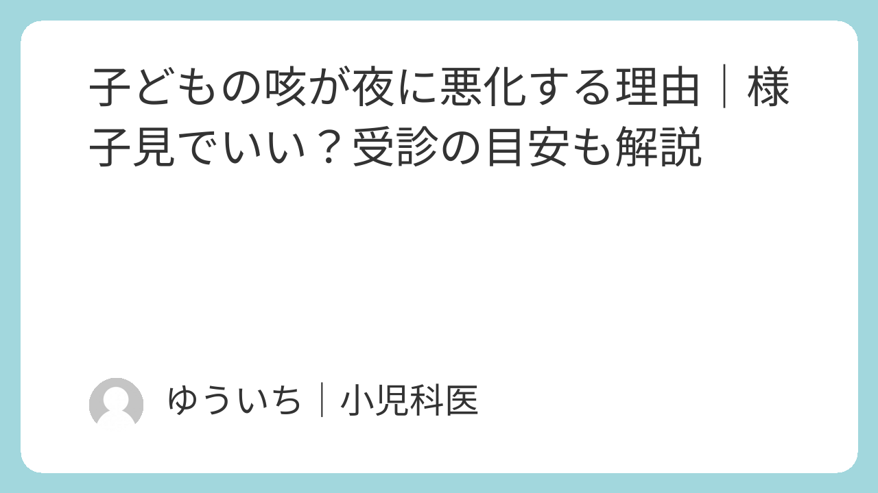 👉 咳の原因、経過、受診目安について小児診療の基本が整理されている
